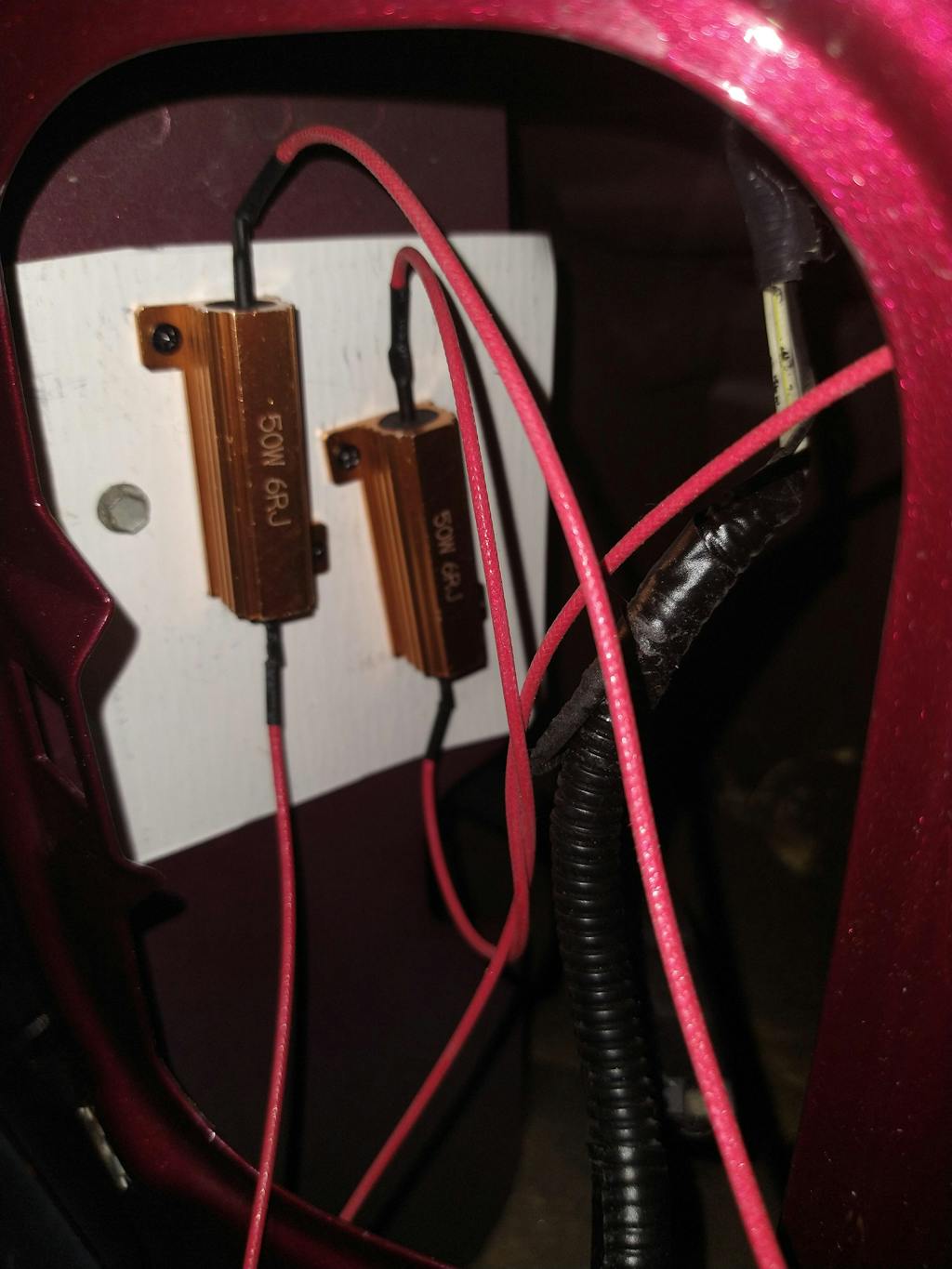 • LED load resistors fix: Bulb Flashing or Flickering/Cancels Radio Interference and Light Turning off when Engine Starts/Cancels Error Message by OBC